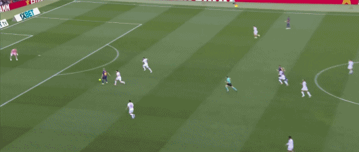 第90+2分钟,奥索传中,索乌头球破门扳回一球,塞维利亚2-5巴萨
